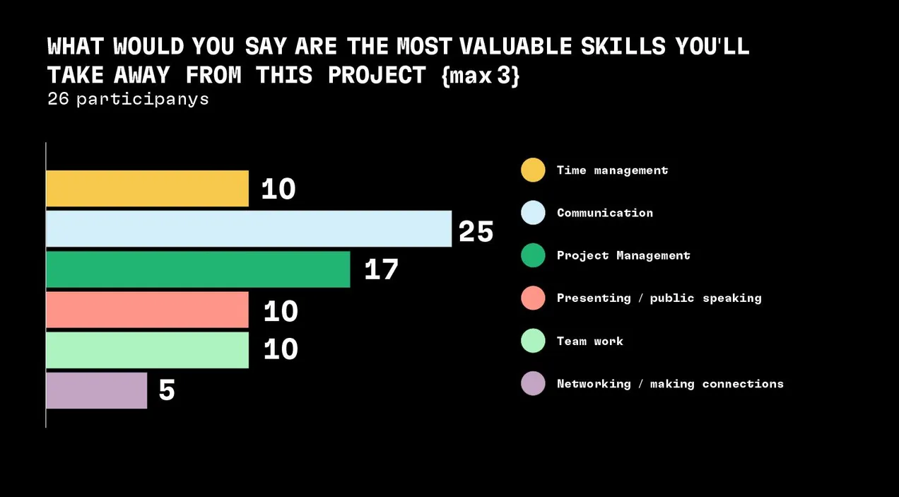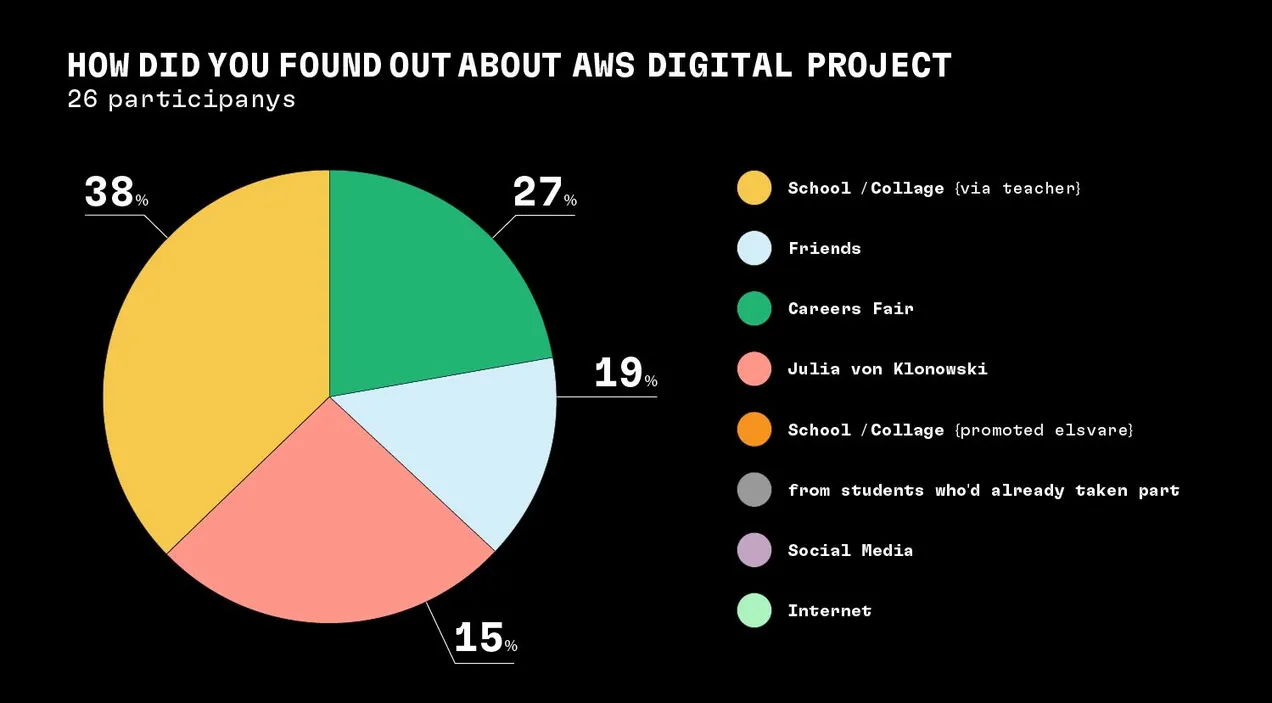 We found out more about the recruitment process and confirmed assumptions that we had after students interviews: Students who come into the project for the second time are more comfortable, while students that take the course for the first time are not really aware of what they are getting themselves into.