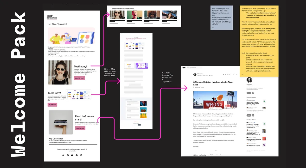 • We proposed sending an information email ahead of every project milestone. Email would contain: information what participants can expect next, videos, testimonials, ready to use assets and tutorials. Starting with an email ‘Welcome Packs’ with information what students can expect after qualifications.